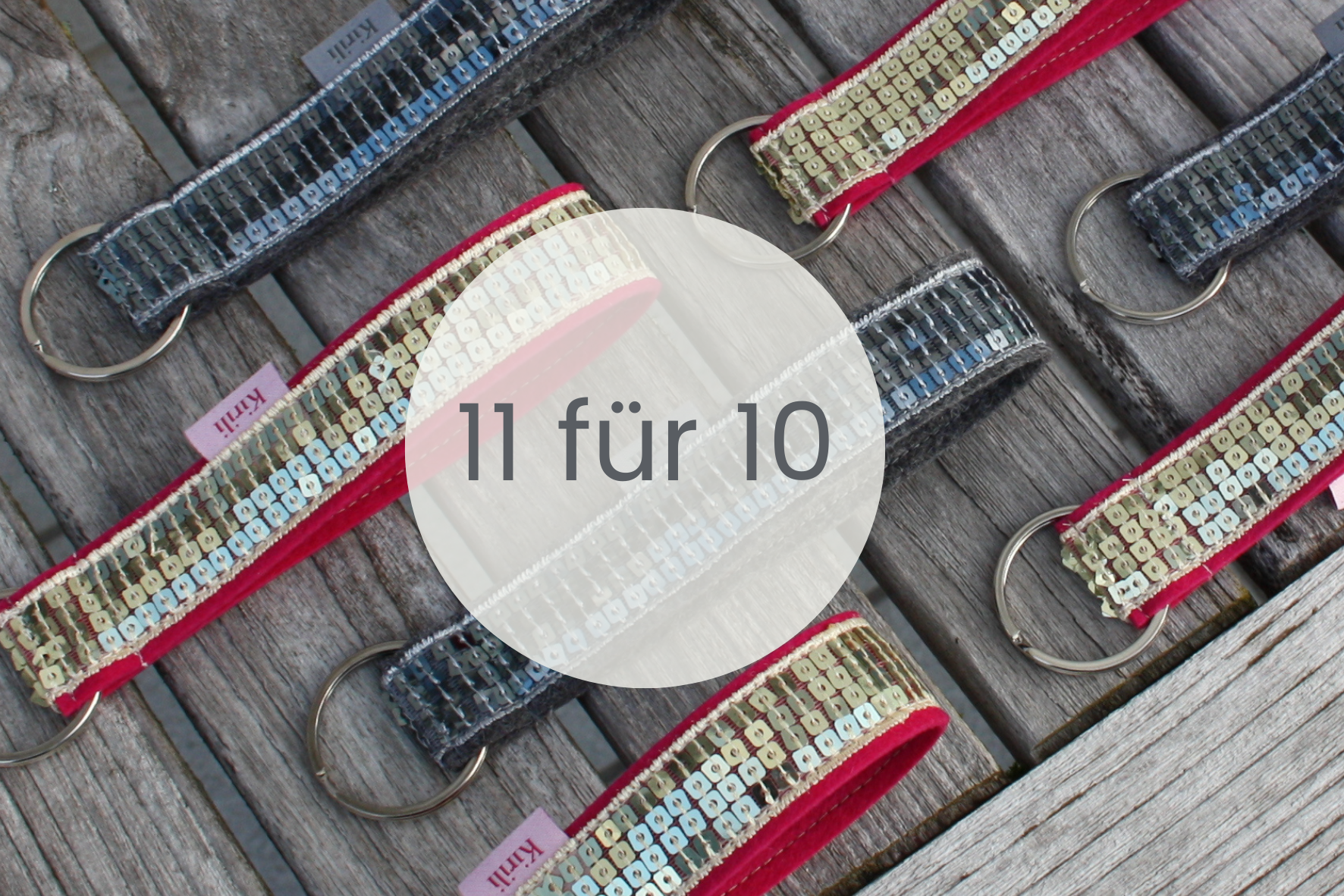 Falls du diesen Schlüsselanhänger gleich einmal reihum an FreundInnen, KollegInnen oder KundInnen verschenken möchtest oder einfach immer gerne einen Schwung Mitbringsel in Reserve hast, profitierst du von diesem “11 für 10”-Package (11 Schlüsselanhänger für 90 EUR statt 99 EUR). Hier sind zwar immer entweder 11 graue oder 11 pinkfarbene drin, du kannst aber über das Kommentarfeld im Bestellprozess deine gewünschte Anzahl angeben.