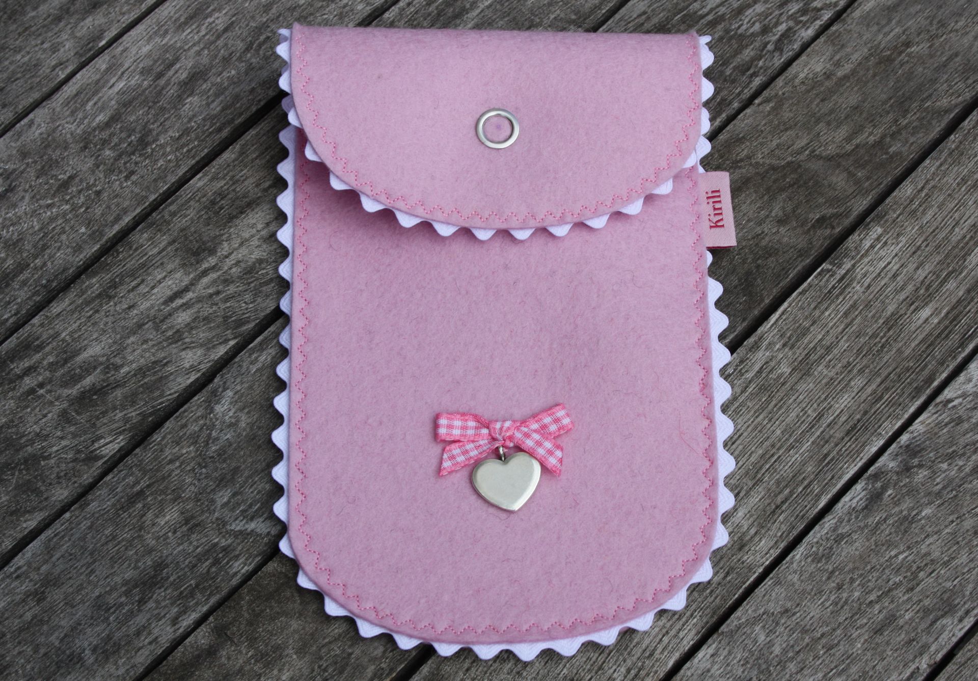 Qualität: 100 % Wollfilz, Herzerl und Druckknopf aus Metall